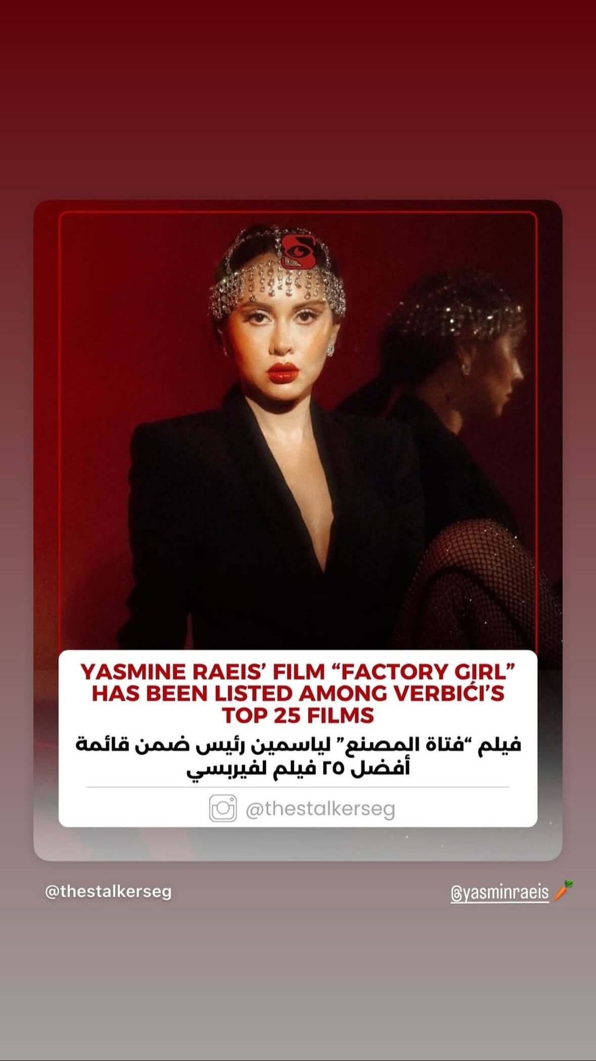 احتفت الفنانة المصرية ياسمين رئيس عبر خاصية القصص المصوّرة على حسابها في إنستغرام باختيار فيلمها "فتاة المصنع" ضمن أفضل 25 فيلمًا عُرض في الربع الأول من القرن الـ21، وذلك من قبل مهرجان القاهرة السينمائي الدولي بالشراكة مع الاتحاد الدولي للنقاد (فيبريسي) وجمعية نقاد السينما المصريين، احتفالًا بمرور