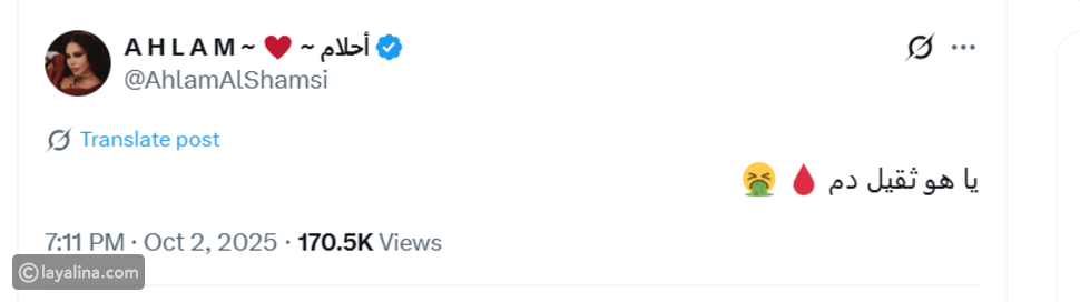 أنهت أحلام تدويناتها بكلمات مقتضبة: "ثقالة دم"، فاعتبرها محمد طاهر موجهة له، ورد قائلاً: "وإذا على ثقالة الدم.. يا أخي خلّيني ثقيل دم، وروّقي ترى الدنيا أبسط من كذا بكثييييير، وتراك منتي صغيرة وكبيرة في العمر، اهتمي بصحتك، وياليتك مطبقة نصيحة والدك الله يرحمه، كان صرتي أفضل وما شدّيتيها كذا".