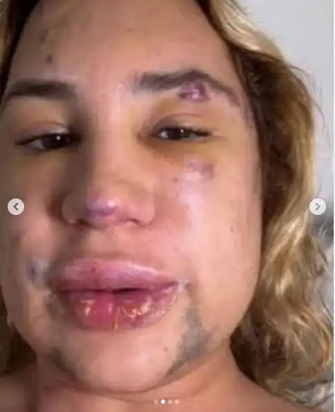 • ظهور التورم والكدمات على وجه المؤثر البرازيلي