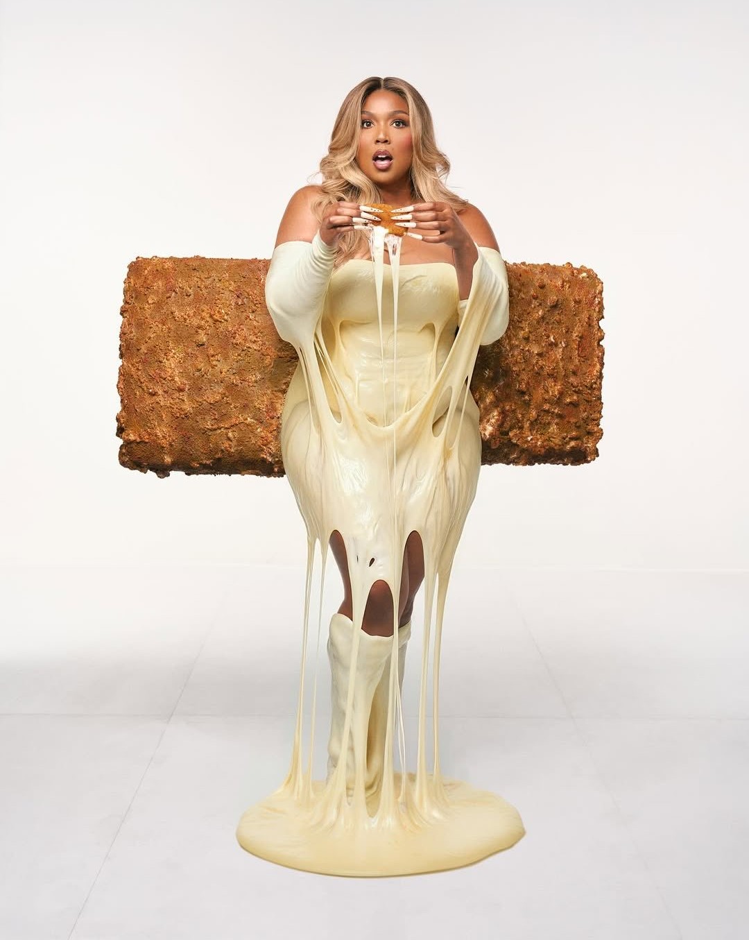المغنية ليزو تجسدت كقطعة "أصبع جبنة الموزاريلا المقلية" من مطعم شهير، مع حجم ضخم وتفاصيل متقنة. التحول البسيط إلى وجبة خفيفة شهيرة أضاف لمسة كوميدية على ظهورها.