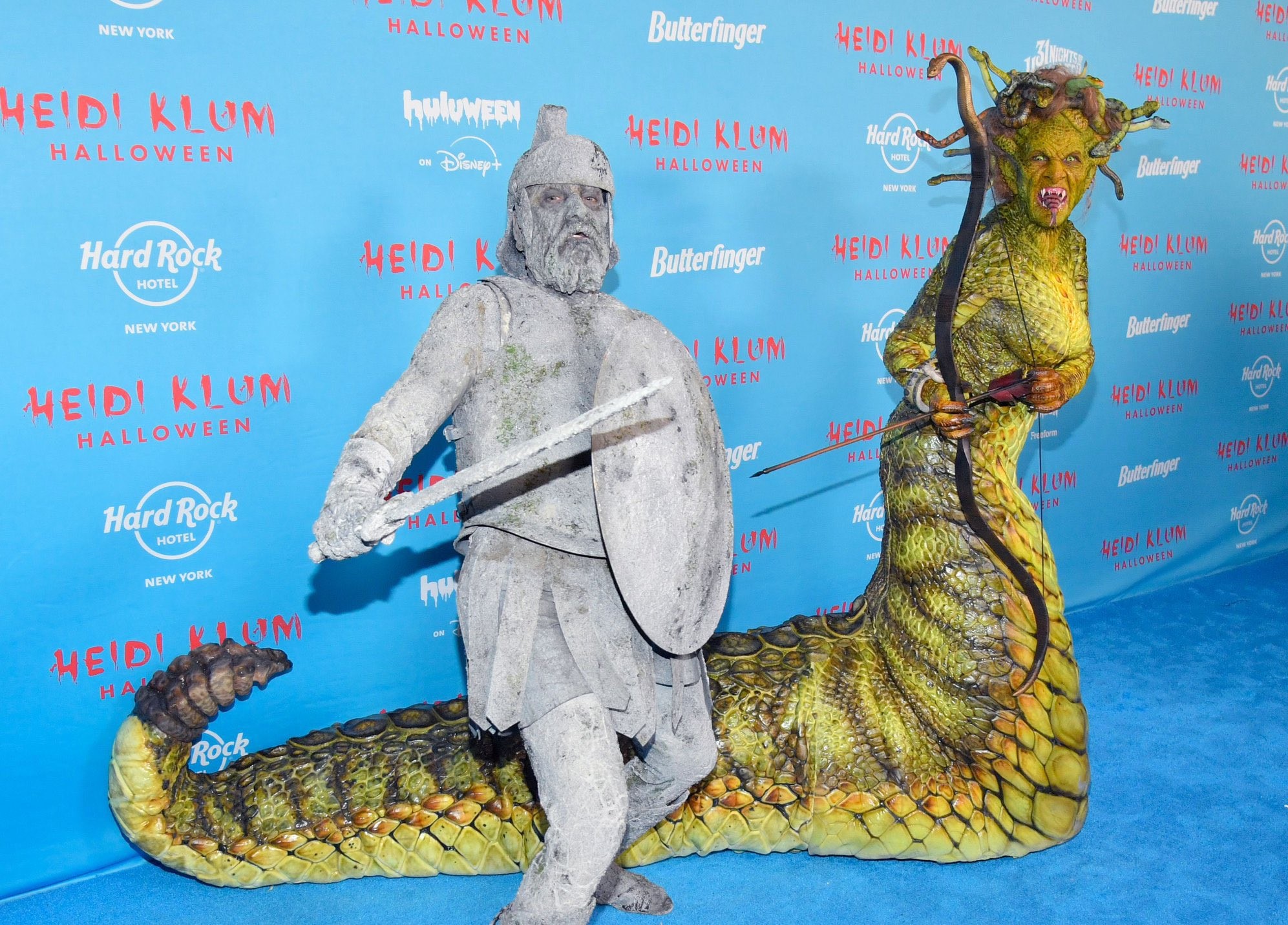 اختارت هايدي كلوم شخصية "ميدوسا" الأسطورية المخيفة ذات الشعر الثعباني، بينما ظهر زوجها توم كوليتز كجندي إغريقي تحول إلى تمثال حجري. التفاصيل الدقيقة حولت المظهر إلى شيء غير بشري تمامًا، حيث كانت "ميدوسا" مغطاة بالحراشف الخضراء، وظهر زوجها بطلاء رمادي يمنحه مظهر الصخر الأصم.