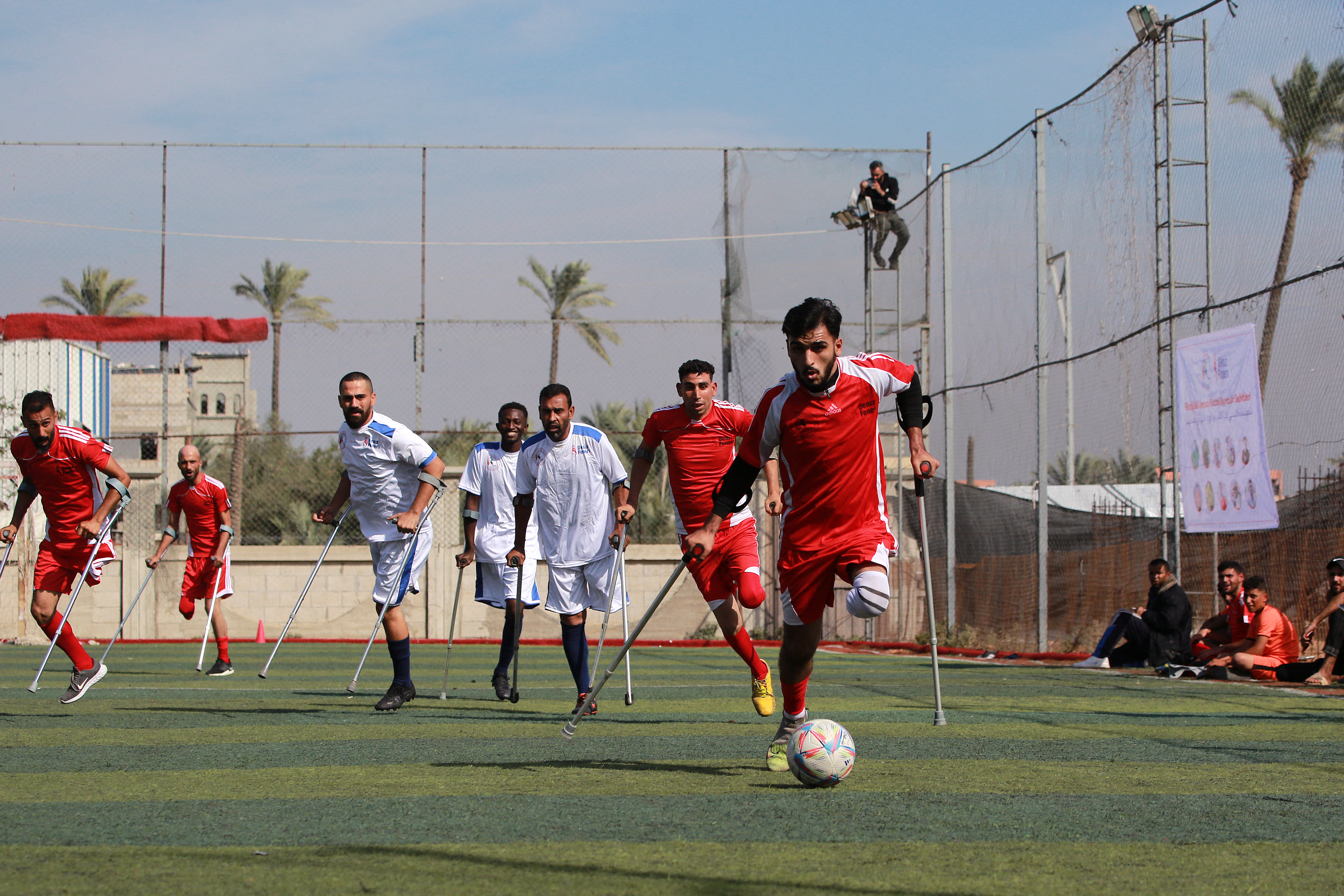 مبتورو الأطراف الفلسطينيون يشاركون في مباراة كرة قدم ضمن بطولة الأمل في دير البلح