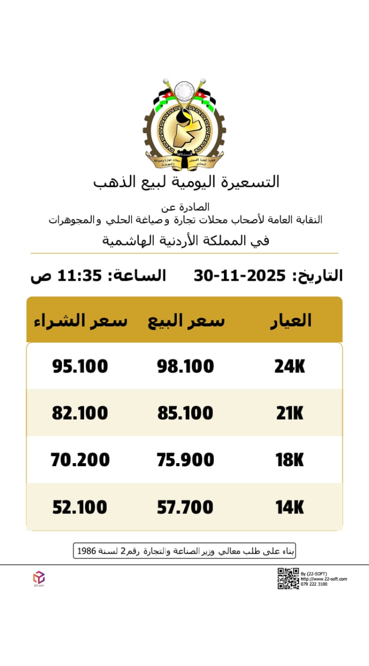 اقرأ أيضا : ارتفاع أسعار الذهب مجددا يثير اهتمام الأردنيين